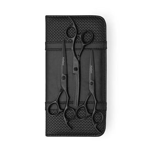 Diese Schere kommt mit einem Scherenetui, Messer, Ersatzklingen, Öl Stift, Mikrofaser-Reinigungstuch, Spannungseinsteller und Plastikeinsätzen.