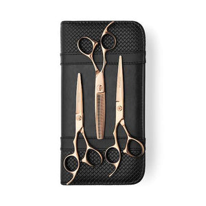 Die Linkshand Matsui Roségold Aichei Friseurscheren sind leicht und elegant; Hergestellt aus hochwertigem Kobalt, der sich hervorragend für Sliding-Schnitte eignet durch langanhaltende Schärfe der Klingen.