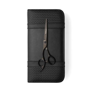 Die Linkshand Matsui Aichei Friseurschere in mattschwarz ist leicht und elegant; Hergestellt aus hochwertigem Kobalt, der sich hervorragend für Sliding-Schnitte eignet durch langanhaltende Schärfe der Klingen.