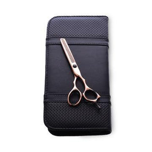 Diese Schere in Roségold mit mattschwarzen Akzenten ist ein absoluter Hingucker und die Qualität ist vom ersten Augenblick an sichtbar. Die roségoldene Ausfürung der Scheren fühlt sich elegant und schön an und wird von unserem Klingenschmied perfekt für dich ausbalanciert.